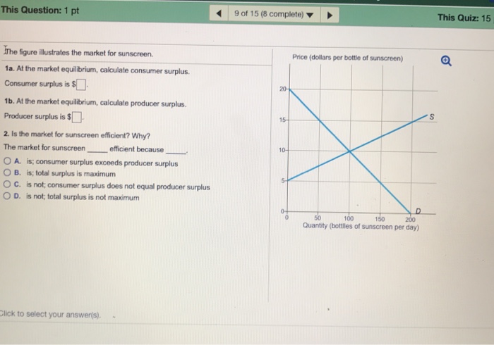 What is the total deadweight loss if the government is successful in its objective. Imagine that a new model of basketball shoes are unleashed #5) describe the concept of allocative efficiency and explain why it is achieved at the competitive market equilibrium. Find the area on the graph corresponding to the net social benefit. I want to talk about equilibrium on factor markets and return to factors putting rms and factors together: It leads to lower prices for consumers and an increase in consumer surplus. Find the consumer and producer surpluses. Producer surplus is generated when the producer is willing to sell their goods at a lower price, and the buyers are willing to accept goods for a if supply increases, producer surplus will increase and vice versa. Learn vocabulary, terms and more with flashcards, games and other study tools. Producer surplus is the amount that producers benefit by selling products at price `p^**` that is higher than the least that they would be willing to sell for. Both consumer surplus and producer surplus are easy to understand as examples. For this solve equation `d=s`. Producer surplus to new producers entering the market as the result of price rising from p1 to p2. Total surplus is maximized in a market at equilibrium.